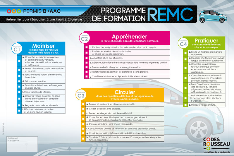 • Évaluation de départ obligatoire et gratuire (B/AAC) à effectuer avec un moniteur agréé